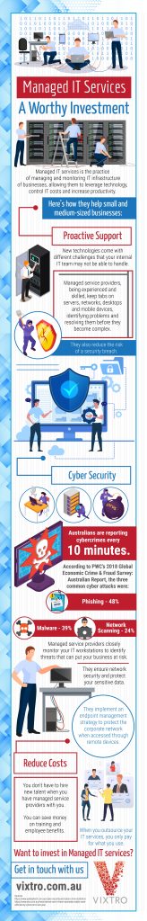 vixtro Blog June 25, 2020 Managed IT services is the practice of managing and monitoring IT infrastructure of businesses: Share on Facebook Share on X